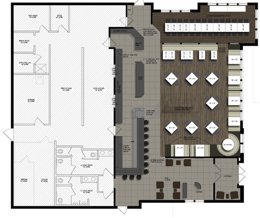 By redefining seating areas, creating a bar, and offering a variety of seating environments for 100, this former Bob Evans is now a sophisticated restaurant